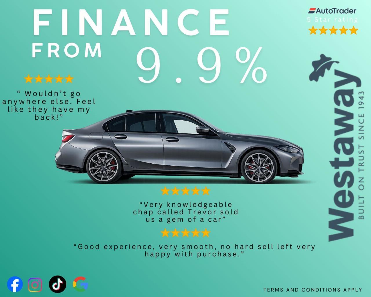 Westaway Motors is Authorised and Regulated by the Financial Conduct Authority. (684353) Finance Subject to status. Other offers may be available but cannot be used in conjunction with this offer. We work with a number of carefully selected credit providers who may be able to offer you finance for your purchase. Westaway Motors - Main Road, Maidwell, Northampton, Northamptonshire, NN6 9JA. Companies House Number:00845122. FCA number: 684353.